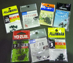 道糸に挟み込んで使うオモリ玉です。G8やG7といった極少のものから、3Bや4Bといった大きいものまで、その重量によって細かく種類が分かれています。