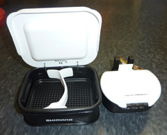 ツケエサを数種類用意する場合があるので、小分けにこのバケツに入れ、バッカンの側面に付けて使います。