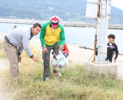 大会参加者のみなさんには、検量後に野北漁港の清掃活動に協力していただきました!