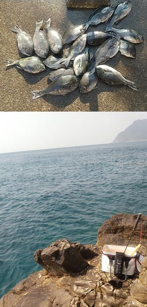 潮が小さかったので釣れるか心配でしたが釣れたんで良かったです。上げ潮は双子島に流れる場所なんですが終始、右流れでした。10時半ぐらいから、パタッと喰いが止まり12時まで2匹でしたが楽しい釣行でさした。